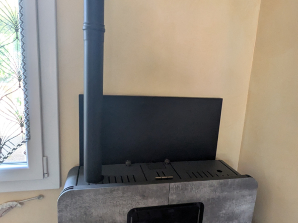 Atouts et prestations : un poêle à granulés programmable, Radiateurs électriques dans chaque pièce, Double vitrage PVC avec volets aluminium, Faibles charges d’énergie et de chauffage.