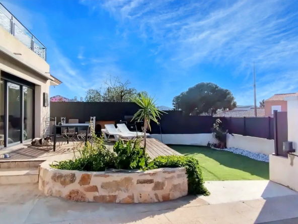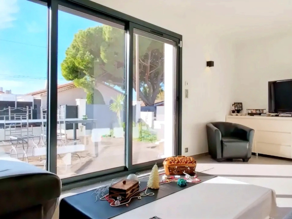Au rez-de-chaussée vaste salon-séjour extrêmement lumineux ouvrant sur la terrasse par une baie vitrée, cuisine américaine entièrement équipée, une chambre avec terrasse, salle d’eau, WC séparés et une buanderie. Au premier étage trois chambres dont une avec grand dressing et terrasse panoramique de 17 mètres carrés plein sud avec vue mer, une grande salle de bain avec douche et baignoire, WC séparés.