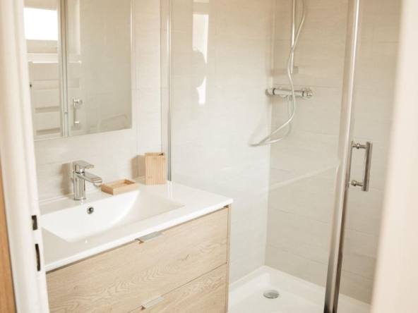 Prestations de qualité : Climatisation réversible, cuisine ouverte sur le séjour, grande salle de bain avec coin buanderie.