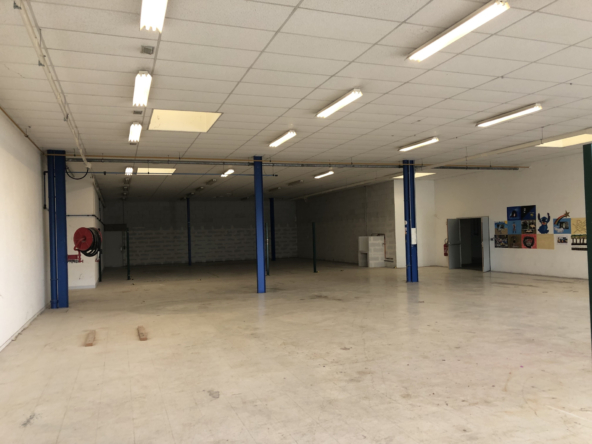 Le bâtiment dispose d’un accès par grande porte sectionnelle, facilitant les livraisons et les flux logistiques.