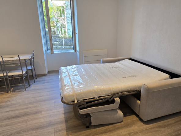 BESANCON, quartier Chaprais , Studio meublé équipé 28 m2 entiérement rénové ,se composant d’une entrée, pièce à vivre avec table,chaises, petit meuble bas, canapé convertible en couchage, salle d’eau avec douche wc meuble , vasque, cuisine équipée composée de meuble, frigidaire, micro-onde, plaque à induction. A cela s’ajoute une cave privative et deux locaux de rangements dans la cour .Parking à proximité .