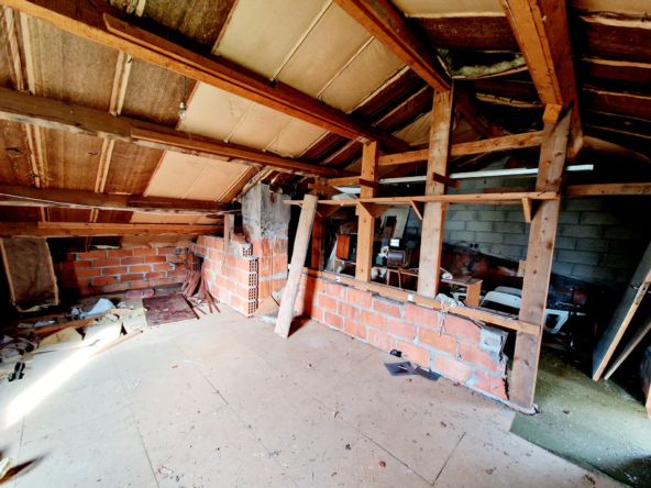 Etage: Une grande chambre (28m2) avec WC , lavabo et un grenier aménageable.