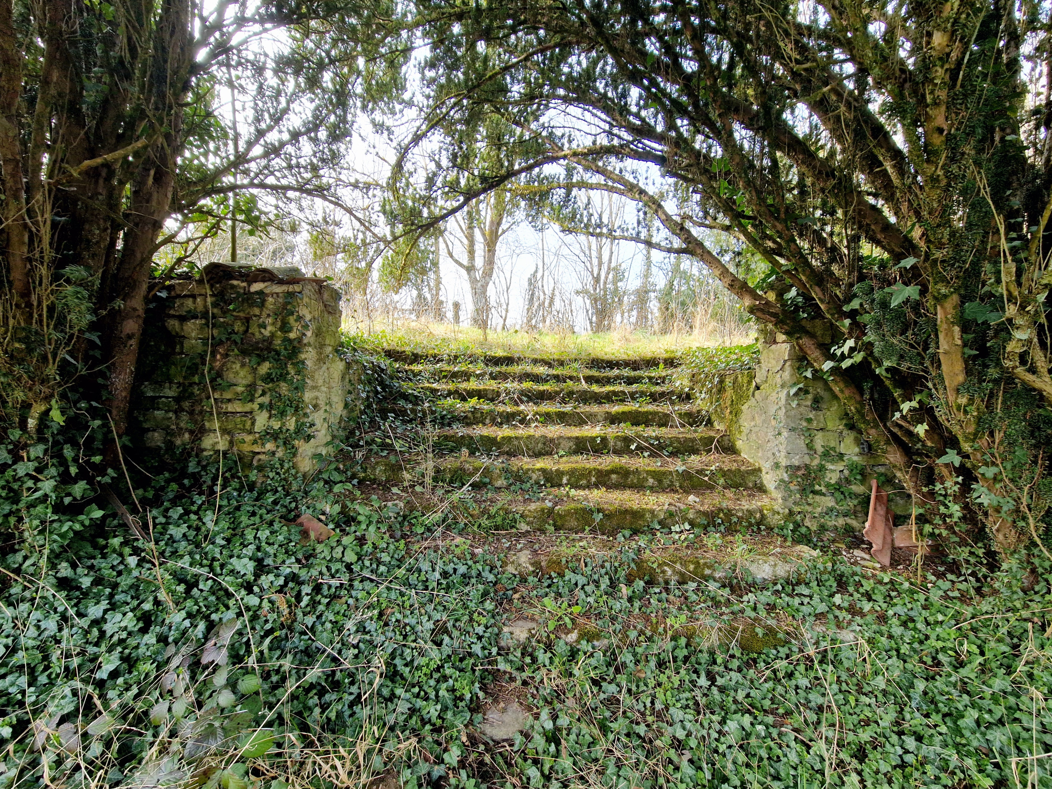 Large flat wooded plot (former tennis court) leading onto a sheltered terrace.