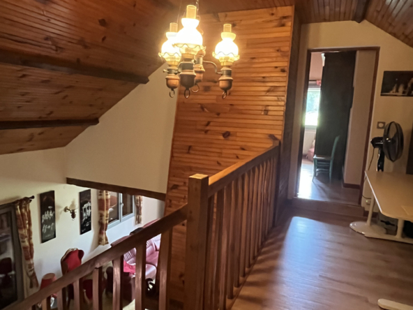 À l’étage supérieur, une mezzanine dessert trois chambres supplémentaires, une seconde salle de bains ainsi que des toilettes.