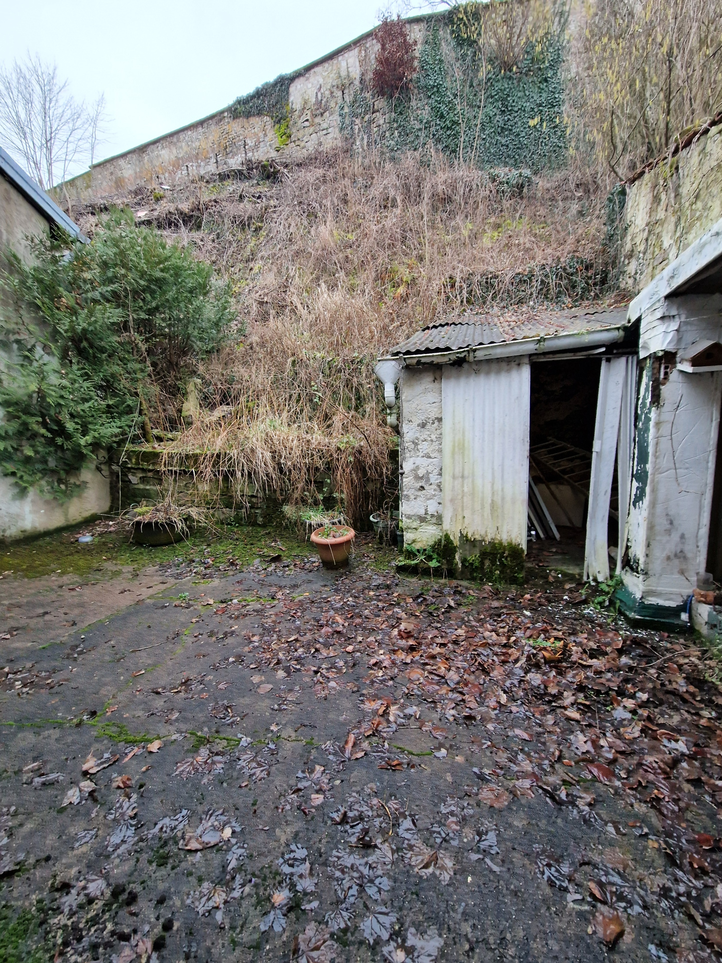 Begane grond: Een garage met toegang tot een gewelfde kelder, plus drie extra kamers.