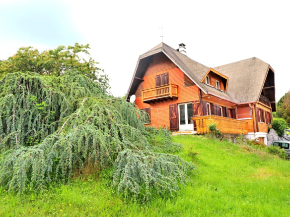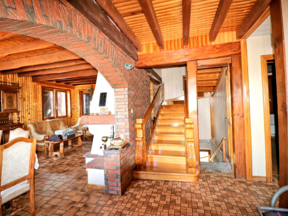 En exclusivité, découvrez cette maison solide et atypique d’environ 150 m2 sur sous-sol complet, érigée sur un terrain arboré de 2000 m2. Elle offre de beaux volumes et un charme authentique rappelant les chalets de la Forêt Noire.