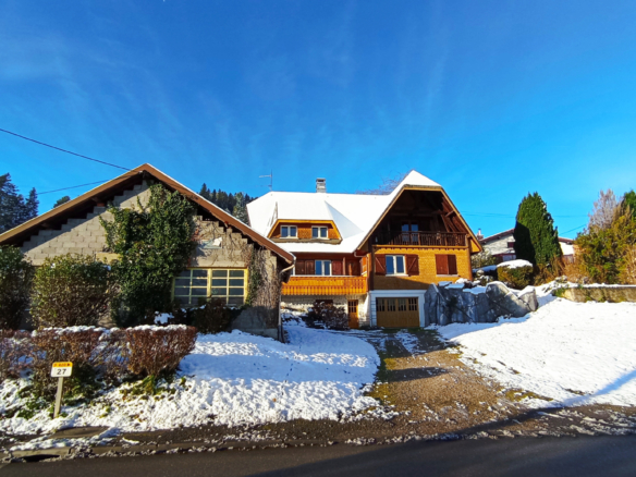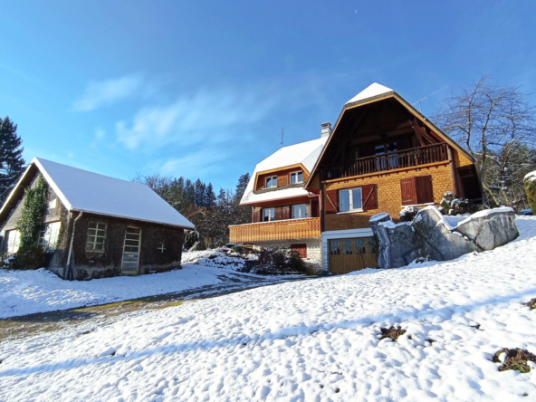 En exclusivité, découvrez cette maison solide et atypique d’environ 150 m2 sur sous-sol complet, érigée sur un terrain arboré de 2000 m2. Elle offre de beaux volumes et un charme authentique rappelant les chalets de la Forêt Noire.