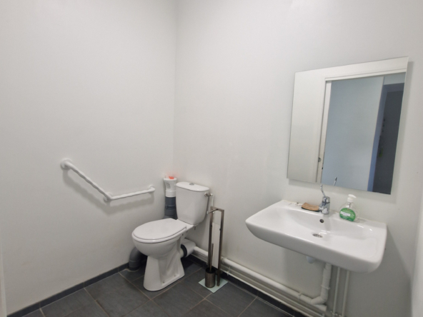 Il se compose de deux grandes pièces principales lumineuses avec point d’eau, ainsi qu’une cuisine aménagée, deux sanitaires privatifs dont un PMR, une pièce secondaire et un espace accueil.