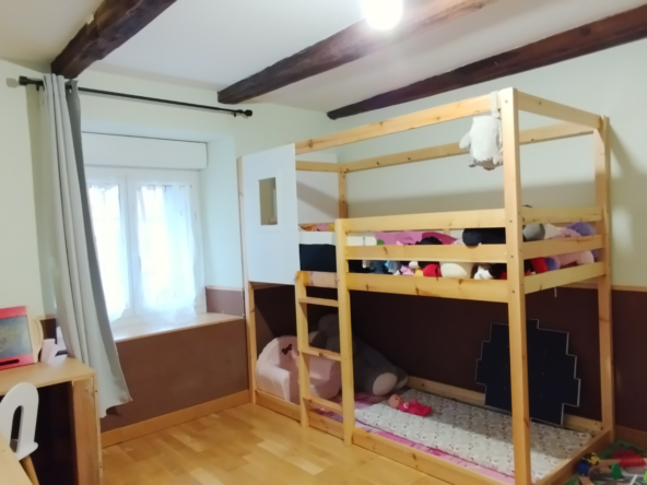 Maison trois chambres, 100 mètres carrés habitables avec plusieurs annexes. Au rez-de-chaussée une grande cuisine entièement équipée, un salon, une salle d’eau. Au premier étage un pallier dessert tois chambres. Grenier aménageable sur l’ensemble. Pompe à chaleur réversible de 2020, un poêle à granulés dans le salon avec bouches dans plusieurs pièces, ballon d’eau chaude thermodynamique de 2022, fenêtres PVC-DV partout, isolation par l’extérieur, panneaux photovoltaïques, isolation du grenier. La cuisine est entièrement équipée (meubles et électroménagers récents). Assainissement conforme. Une grande grange, une cour centrale, une ancienne écurie, un grand garage et un hangar agricole agrémentent ce bien. Joli jardin derrière.