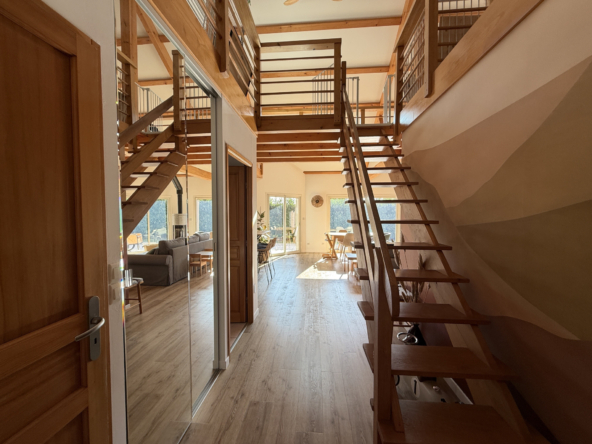 Philippe ROBERT / IDLR Besançon vous propose cette superbe maison de 2001, recemment entièrement rénovée, composée de 3 chambres, un vaste espace de vie avec mezzanine à l’étage, un garage double.
