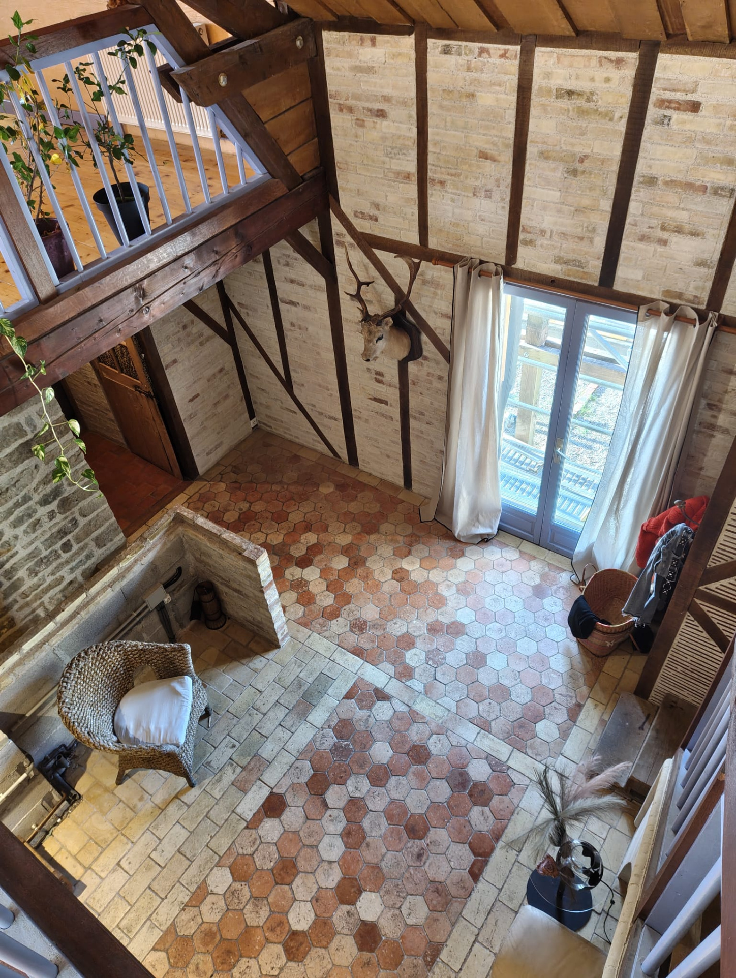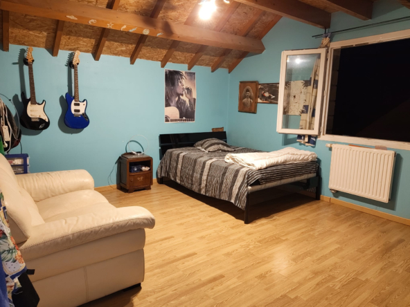 Montez à l’étage : vous arrivez sur une mezzanine avec de superbes tomettes qui dessert 2 chambres, une pièce pouvant servir de dressing ou bureau attenant à une salle de bain (quelques petits travaux à prévoir) et un toilette. Besoin de rangements? le grenier est là.