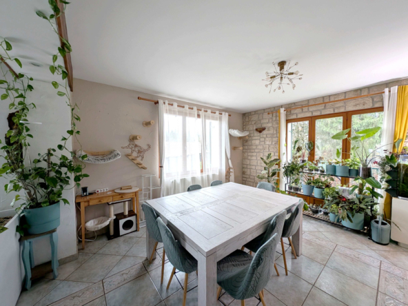 À l’extérieur, vous profiterez d’un terrain clos et arboré de 1 980 m2, avec portail électrique, d’un grand garage et d’une piscine semi-enterrée avec terrasse et cuisine d’été, idéale pour les beaux jours.