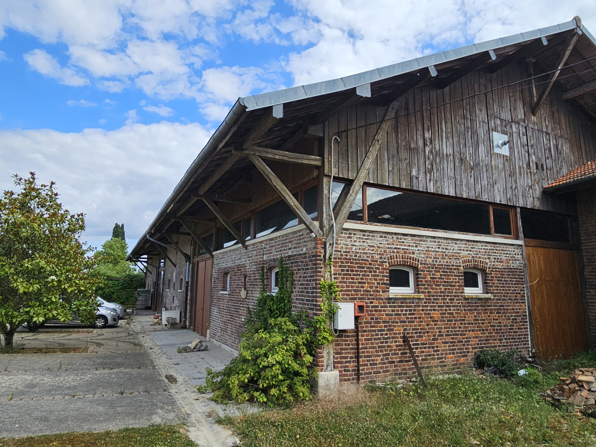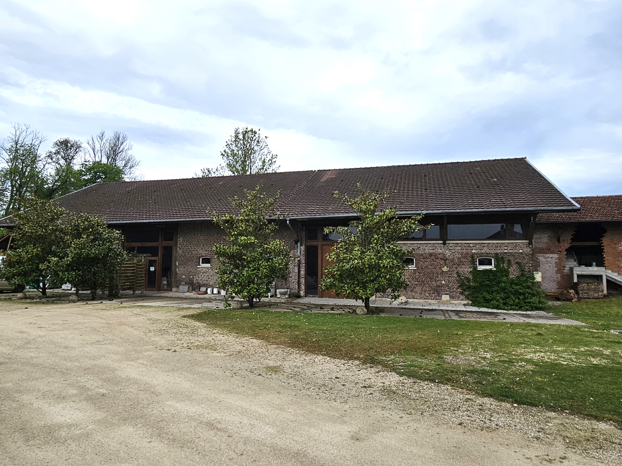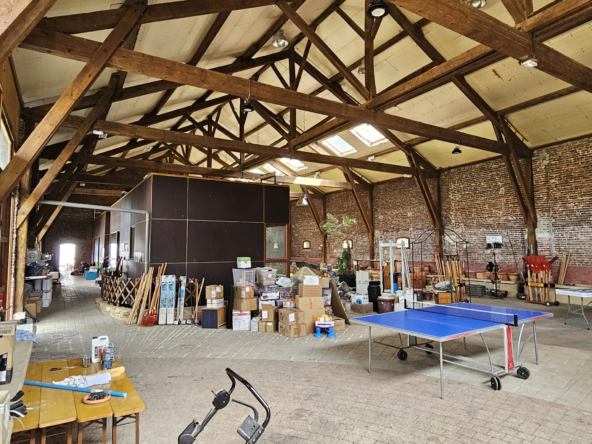 Sur une parcelle de près de 2000 m2, un hangar en brique de 500 m2, charpente traditionnelle et couverture tuiles mécaniques.