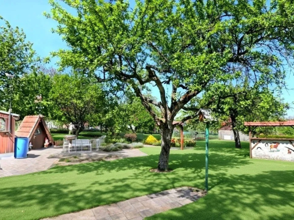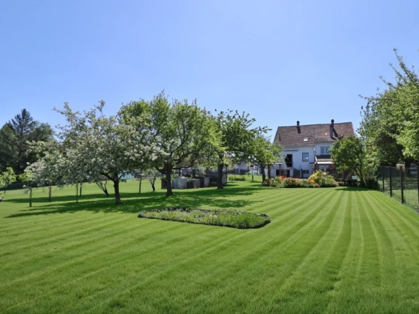 Grand terrain de 1180 m2 clôturé avec jardin et verger. Cour intérieure. Maison construite sur un sous-sol complet : idéal pour le rangement. Garage, chaufferie, cellier et cave pour un espace optimisé. chauffage central avec chaudière bois et mixte.