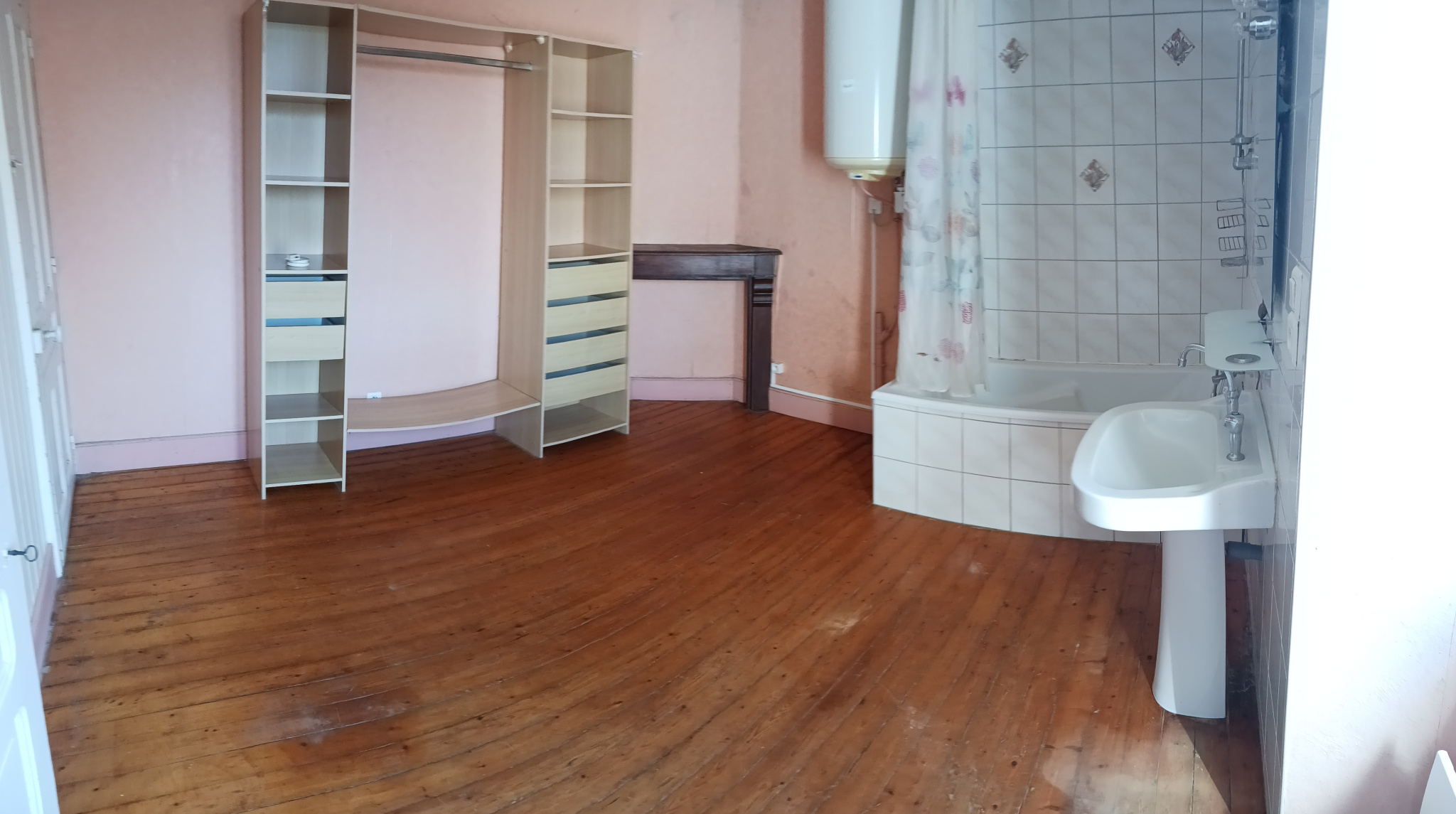 La première maison, d’une surface habitable d’environ 58 m2, comprend au rez-de-chaussée une cuisine (12 m2), un salon (14 m2) et un WC. À l’étage, une chambre (14 m2) et une salle de bain (13 m2). Habitable rapidement, elle peut générer un premier revenu locatif après quelques rafraîchissements.