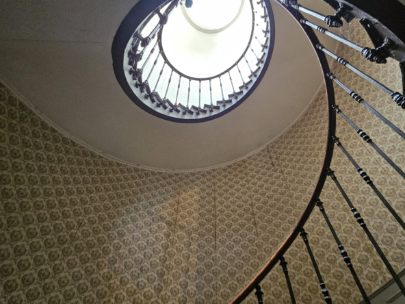 Au 2ème, un appartement de 100 m2 avec une entrée, une cuisine, une salle d’eau, 2 bureaux, une chambre et un séjour… à conforter complétement.