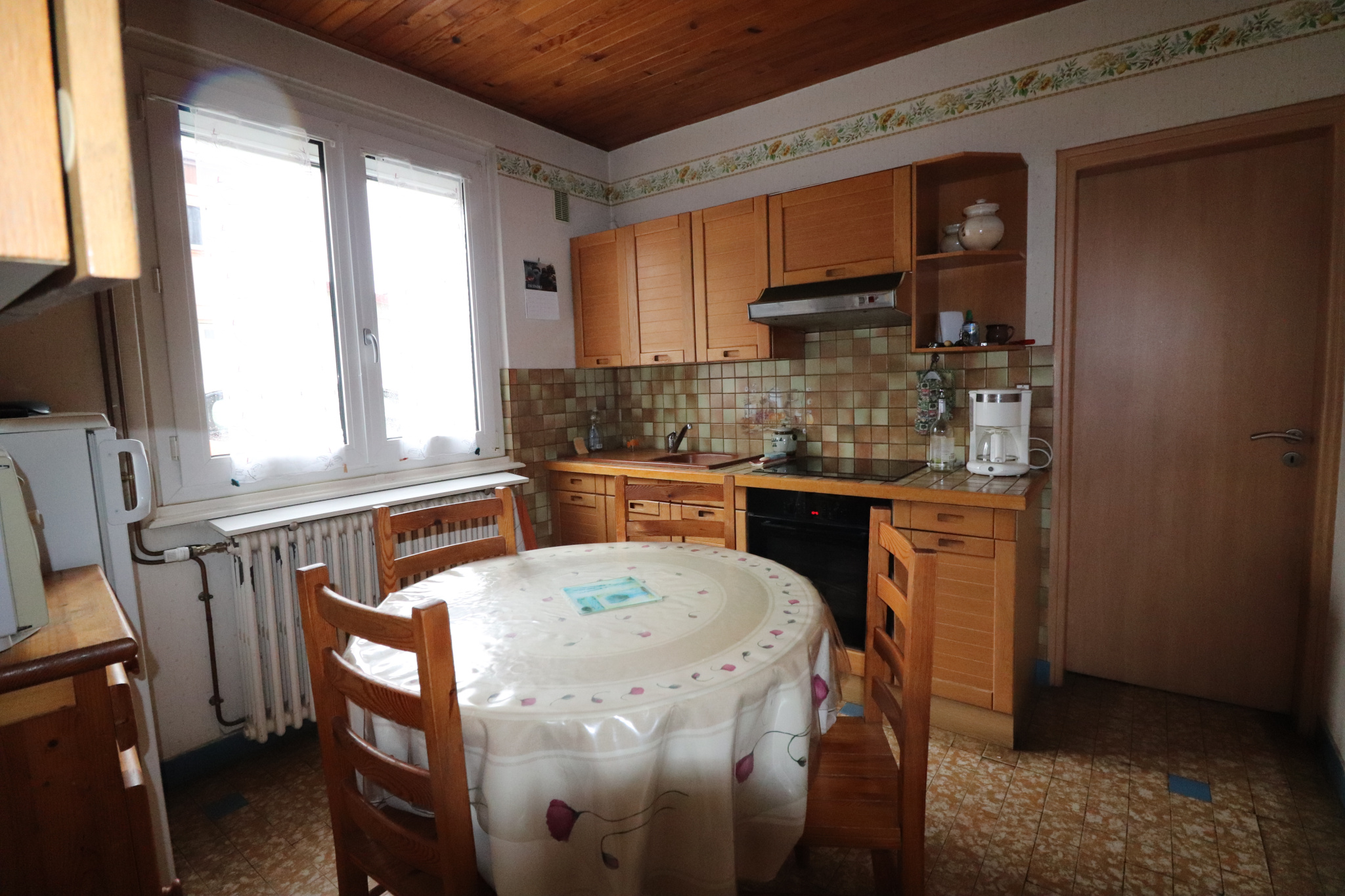 La superficie habitable de 70 m2 est bien agencée et se compose d’une entrée, d’un séjour, d’une cuisine équipée, sdb, wc indépendant, et de 3 chambres avec placards.