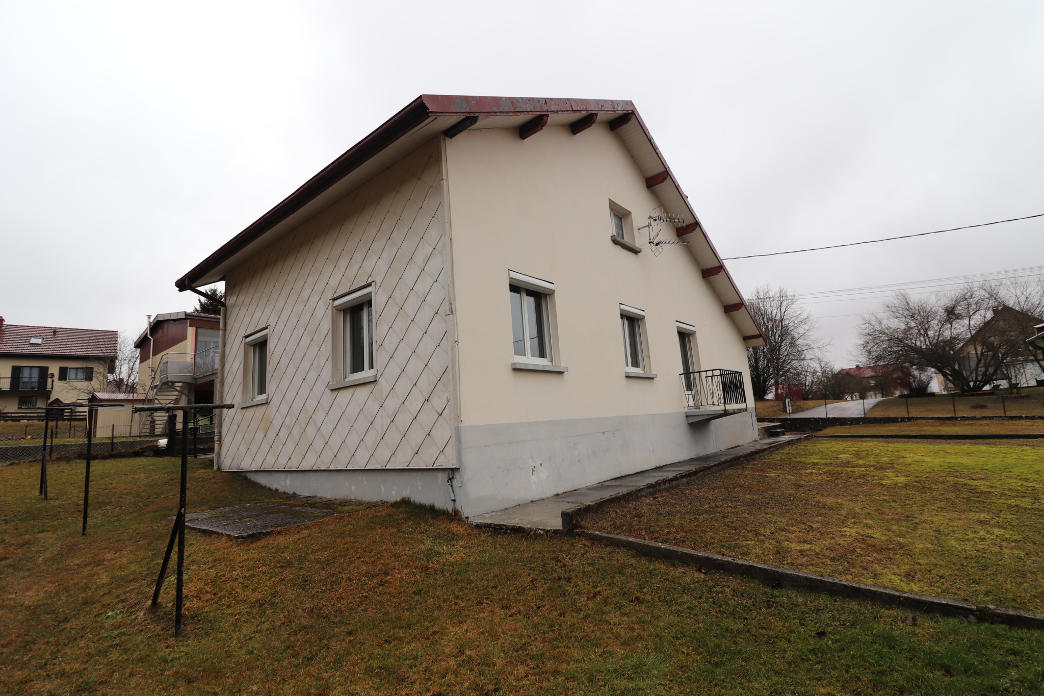 La maison est lumineuse, vous verrez que le terrain est agrable, il surplombe le Drugeons et est déjà clôturé !
