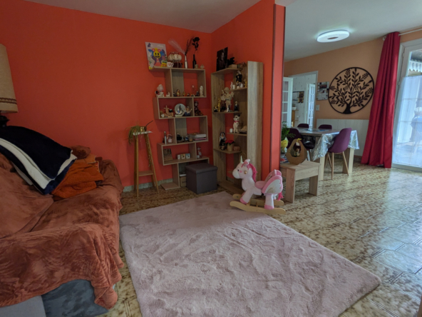 La partie habitable se compose de : Trois chambres, une cuisine donnant sur terrasse, une salle de bain, un salon séjour avec trois portes-fenêtres donnant aussi sur terras.