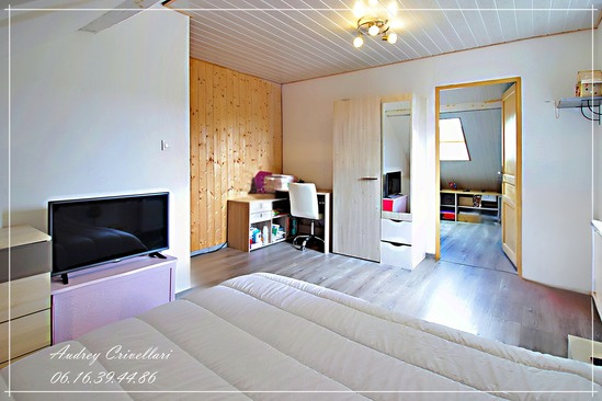 Au deuxième étage, une seconde chambre de belle taille et une pièce attenante à aménager en bureau, coin lecture ou salle de jeux.