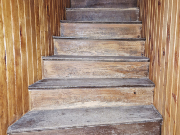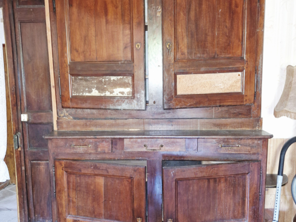 it has retained its authentic features, doors, handles, furniture, fireplace and beams.