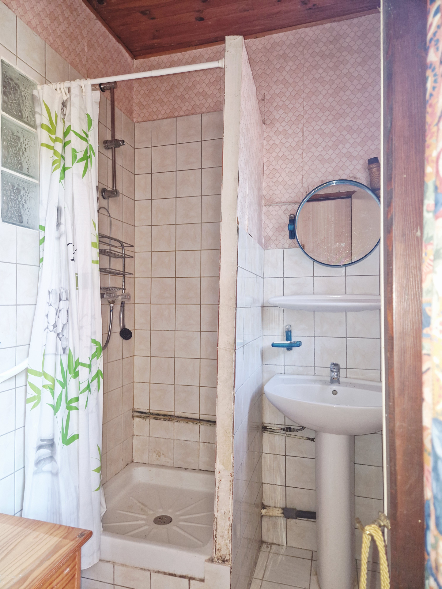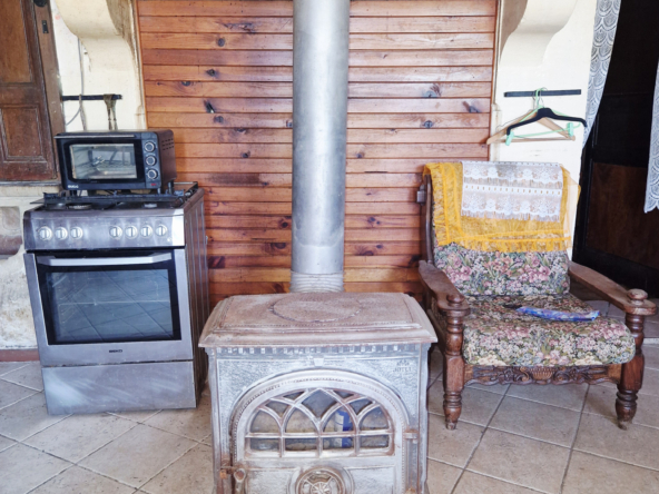 the house comprises a kitchen with a wood-burning stove, a shower room with shower, a wc and a large living room.