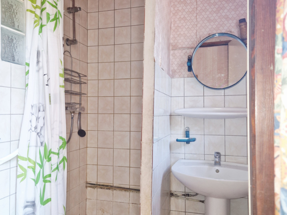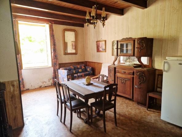 la maison est composée d’une cuisine avec un poele a bois, une salle d’eau avec douche, un wc, un grand séjour.