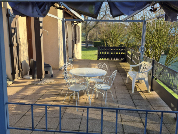Au RDC Pièce de vie agréable ouverte cheminée, Cuisine équipée accessibilité facile sur la terrasse.Salle de bain,  Bureau 8.56 m2 et 1 grande chambre dressing toilettes
