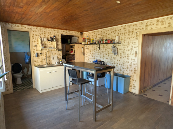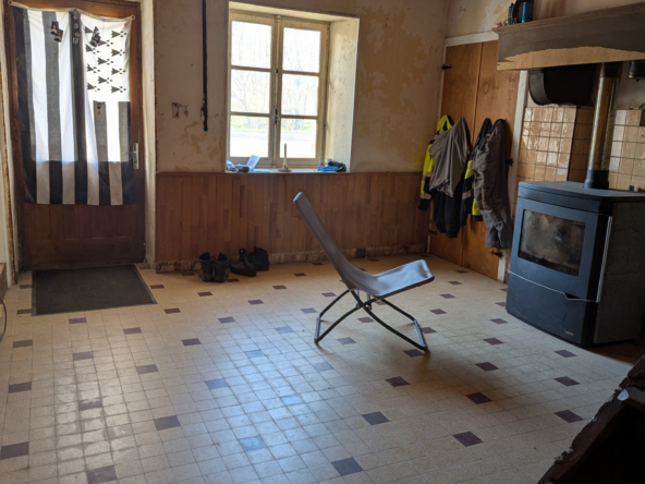 une ferme à rénover composée d’une entrée sur séjour, cuisine, chambre,salle d’eau et wc