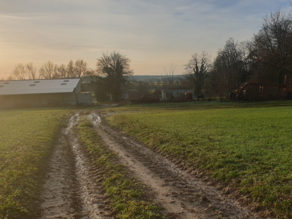 À l’extérieur, vous profiterez d’une cour et d’un hangar d’environ 400 m2, idéal pour une activité agricole, artisanale ou de stockage.