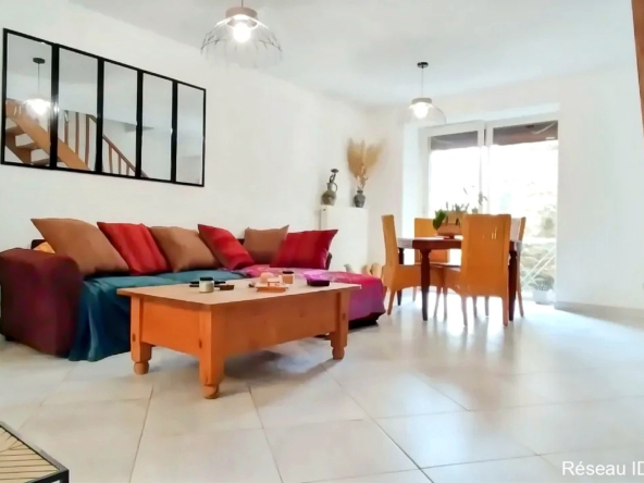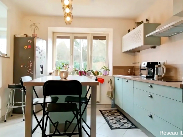 Jolie maison, quatre chambres, 118 mètres carrés, entièrement rénovée. Au rez-de-chaussée une entrée, une cuisine entièrement équipée, un séjour, WC séparés. Au premier étage un pallier dessert quatre belles chambres et une grande salle d’eau. En annexe une grange de 43 mètres carrés.