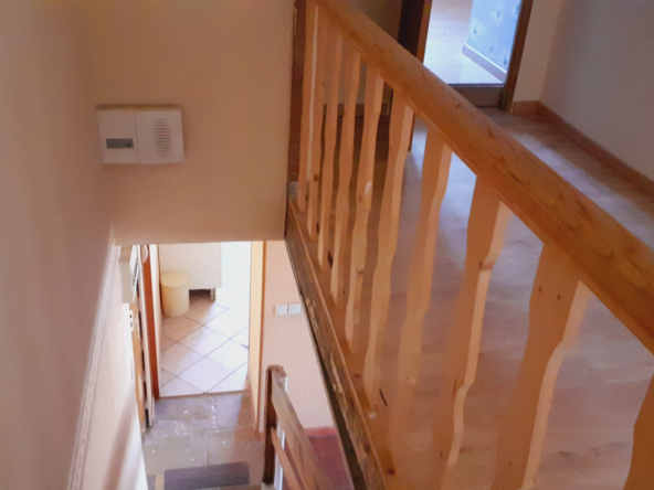 A l’étage : 3 chambres dont une suite parentale, 1 pièce à vivre de 40 m2, une salle de bain, un sanitaire
