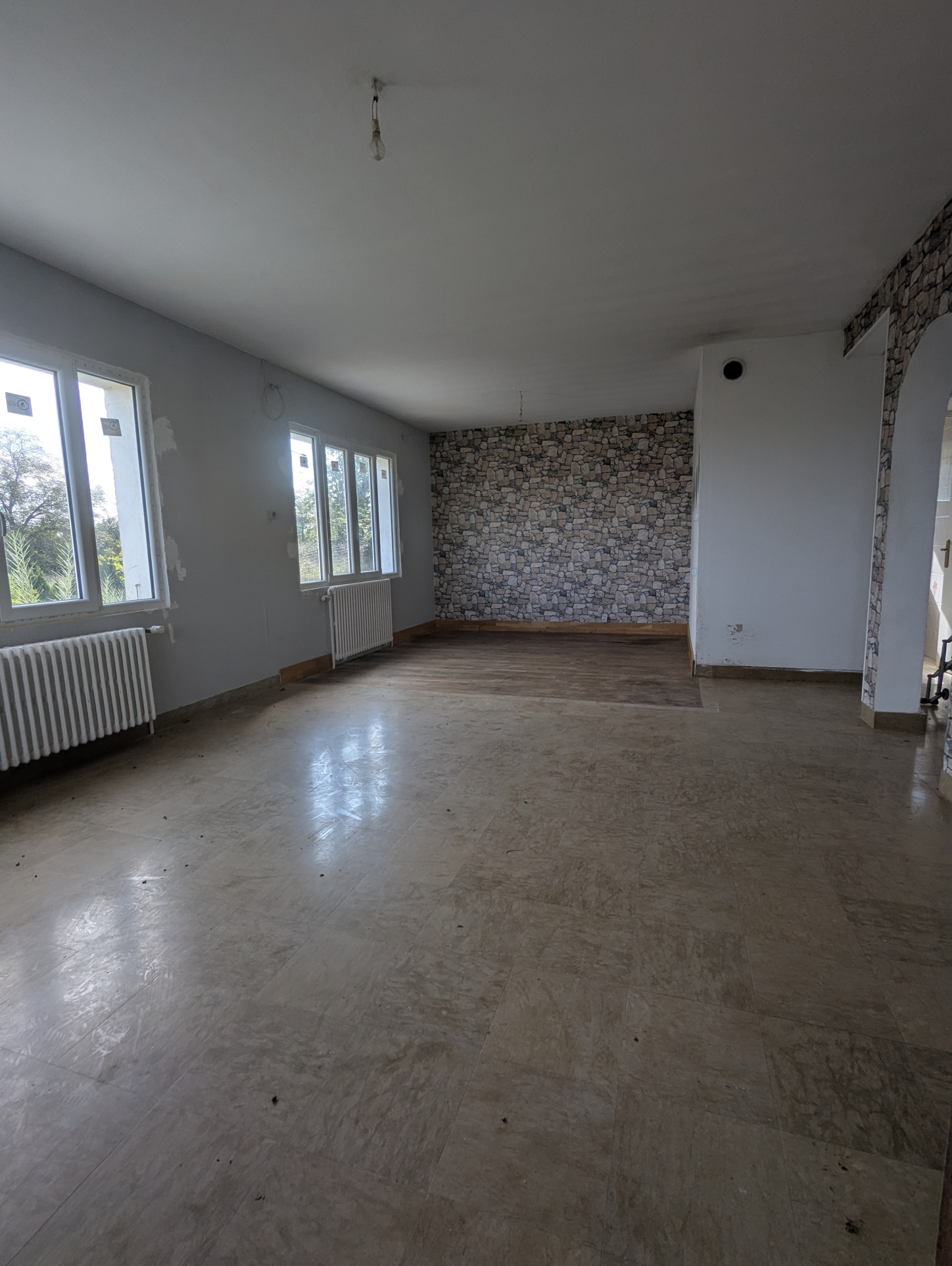 d’un pavillon sur sous sol de 72m2 composé d’une entrée , un grand salon/séjour, une cuisine , deux chambres. SDB et wc