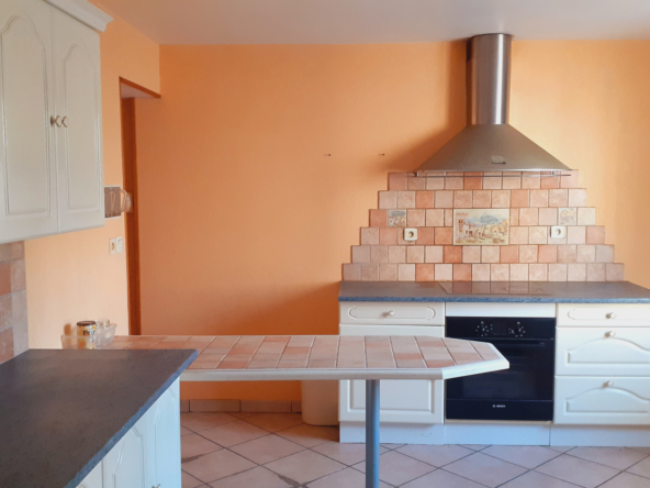 Rez de chaussée : un ancien local commercial de 41 m2, une pièce de 60 m2, un garage 20 m2. . Pour la partie habitable qui est de 180 m2, au rez de chaussée une cuisine intégrée et équipée, un séjour .