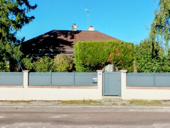 Pavillon, 118 mètres carrés habitables, trois chambres. En plain-pied un séjour, cuisine séparée, une salle d’eau, trois chambres, grande véranda, WC séparés. Sous-sol complet avec grand garage, une chaufferie, une cave, une pièce pouvant être aménagée, une cave… Un second grand garage non attenant avec grenier pouvant servir d’atelier ou de garage à un gros véhicule (utilitaire). Jardin tout autour. Ce pavillon nécessite un rafraichissement total : Sols, murs et plafonds, modernisation de la cuisine et quelques travaux de mise aux normes. Chauffage central avec chaudière récente, fenêtres DV-PVC partout avec volets roulants électriques.