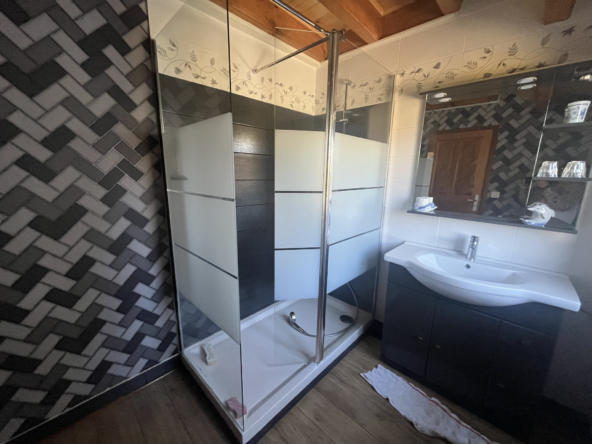 A l’étage : Un vaste palier pouvant faire office de bureau, bibliothèque, espace détente ou salle de jeux. Un salon indépendant, chaleureux et lumineux, pouvant aussi servir de chambre supplémentaire ou de salle de loisirs. Deux chambres spacieuses, avec vue dégagée sur le terrain. Une seconde salle d’eau, deuxième toilette séparée.
