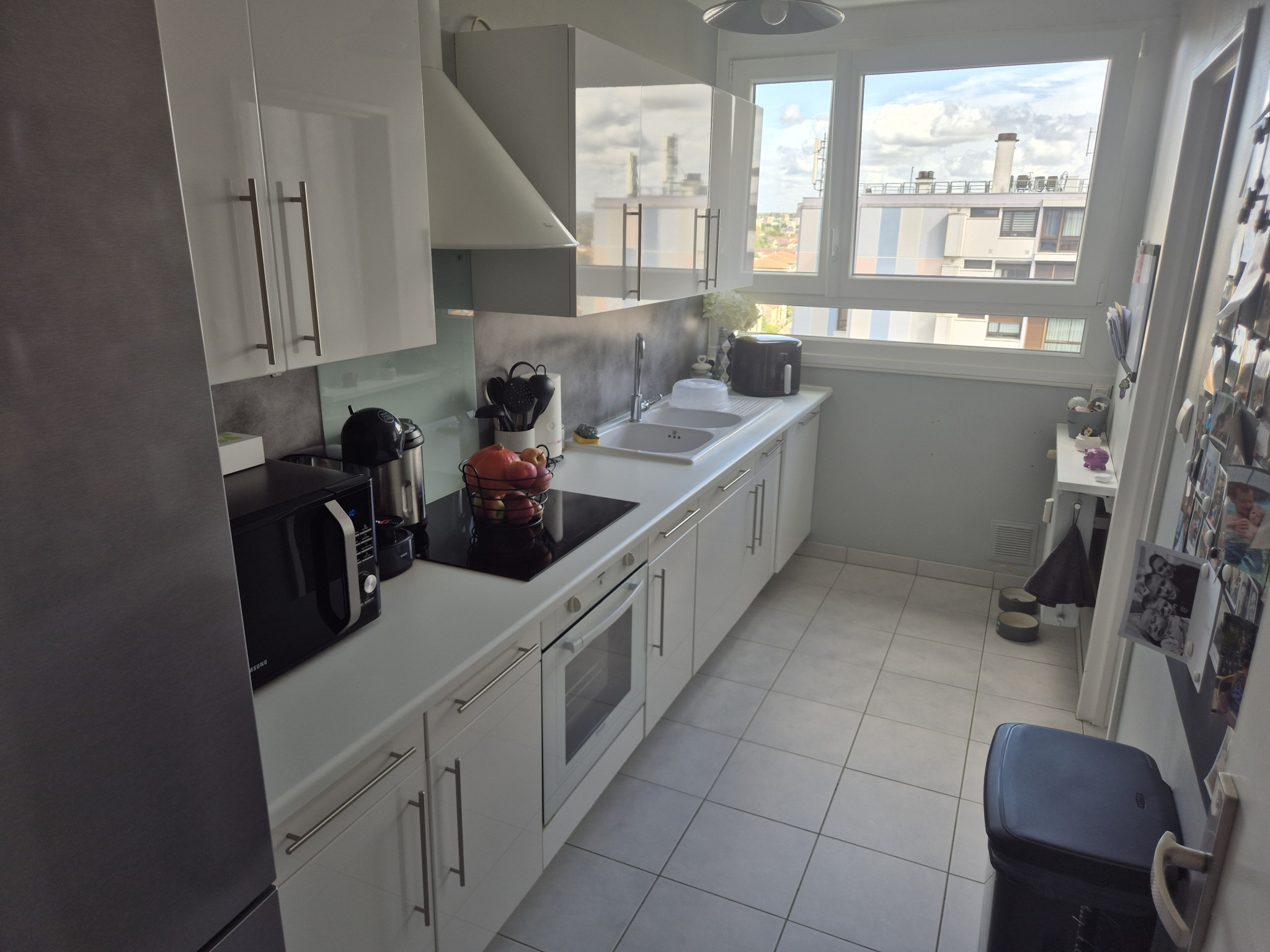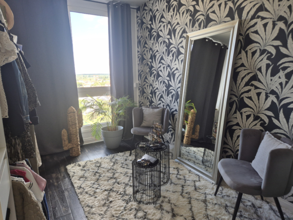 Entrée avec placards, belle pièce de vie avec balcon carrelé offrant une vue imprenable sur la ville de Saint-Dizier, cuisine équipée, 2 chambres, une salle d’eau et wc séparés.