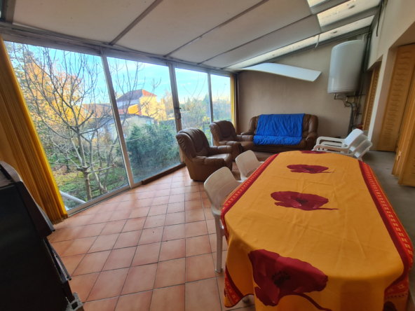 Elle se compose d’une entrée, d’un salon/séjour, d’une véranda, d’une cuisine fermée, d’une chambre, ainsi que d’une salle d’eau et des toilettes au rez-de-chaussée.