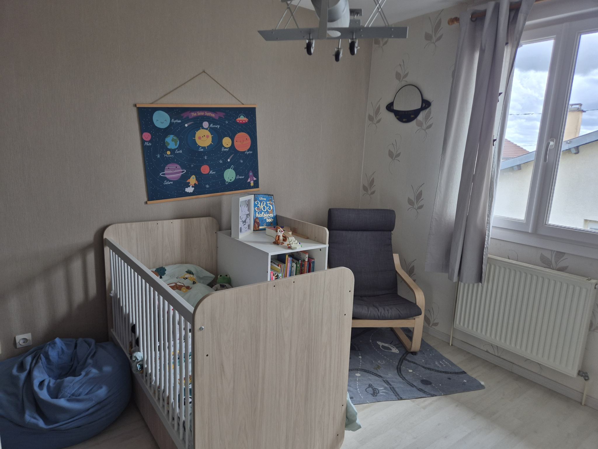 A l’étage : 3 chambres, une salle d’eau avec douche + meuble vasque et des toilettes séparés.