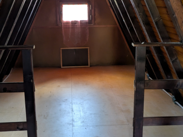 À l’étage, accessible par un escalier étroit, se situe une seconde chambre (bénéficiant d’un accès à un potentiel toit-terrasse).
