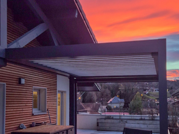 . Pergola bioclimatique avec brise-vent et vue dégagée