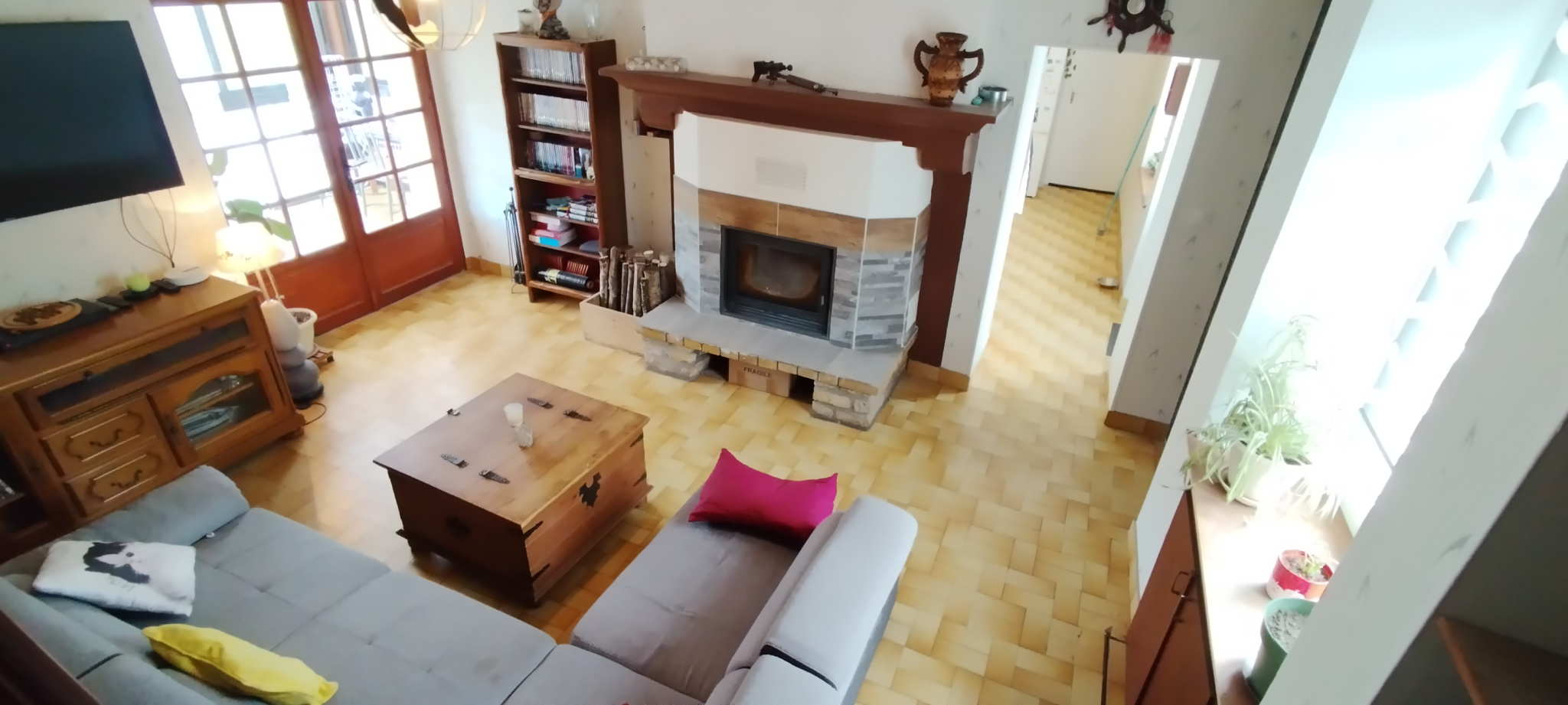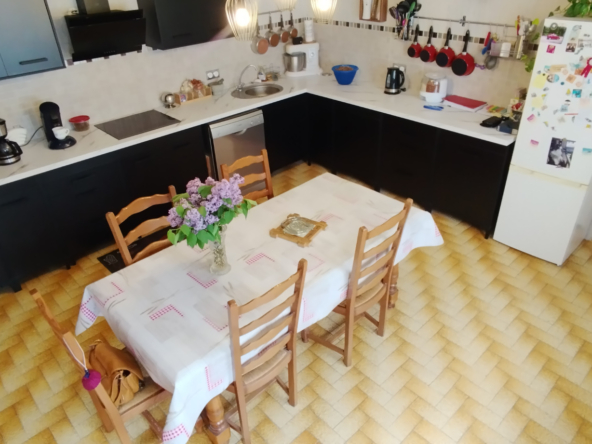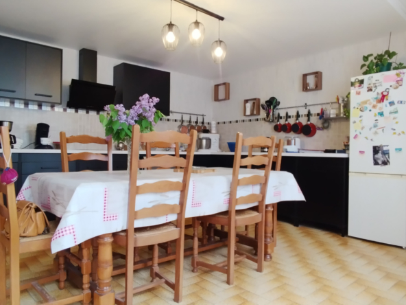 Maison cinq pièces, 120 mètres carrés habitables. Au rez-de-chaussée une grande cuisine équipée de meubles entièrement neufs, un salon avec insert à bois neuf, une véranda sur le salon, une chambre, une ancienne salle de bain (qui pourra servir de stockage, bureau…), WC séparés. Au premier étage un pallier dessert un grand bureau traversant, une chambre, une immense salle d’eau et WC séparés.