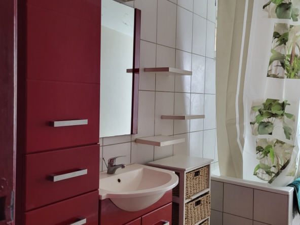 À l’étage, un appartement indépendant, loué en meublé  classé F (DPE).