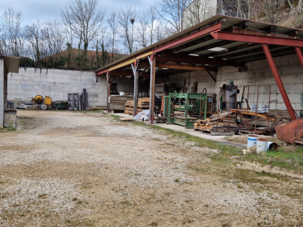 un batiment semi ouvert 175 m2 avec banc de coupe pour planches