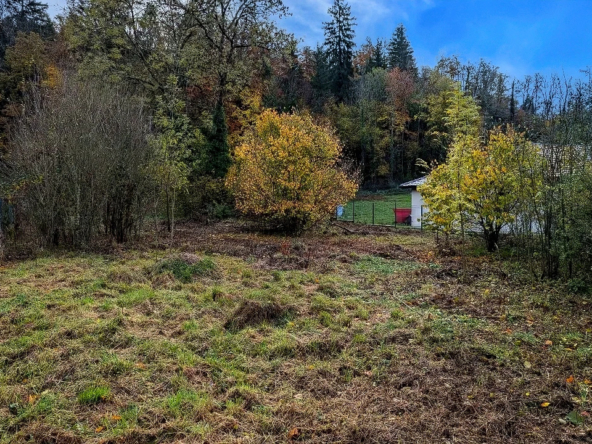 Ce terrain, plat et bien proportionné (≈ 15 m de façade × 41 m de profondeur), bénéficie d’un environnement calme, verdoyant et authentique, au cœur de la nature jurassienne.
