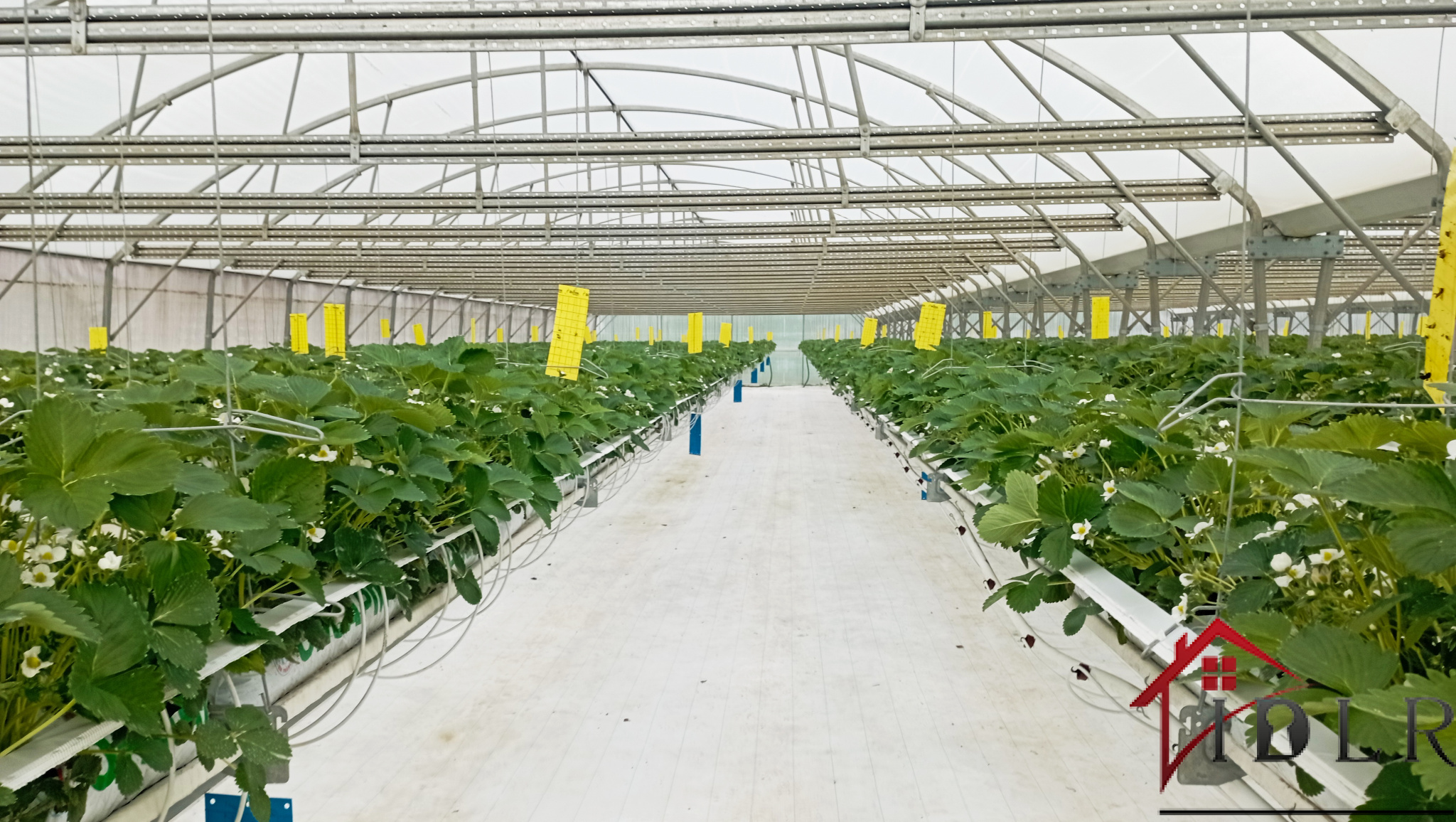 6 serres à fraises en double parois pour une surface de 2600 m2.