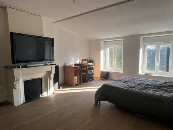À l’étage, vous découvrirez deux vastes chambres ainsi qu’une salle de bains avec toilettes.