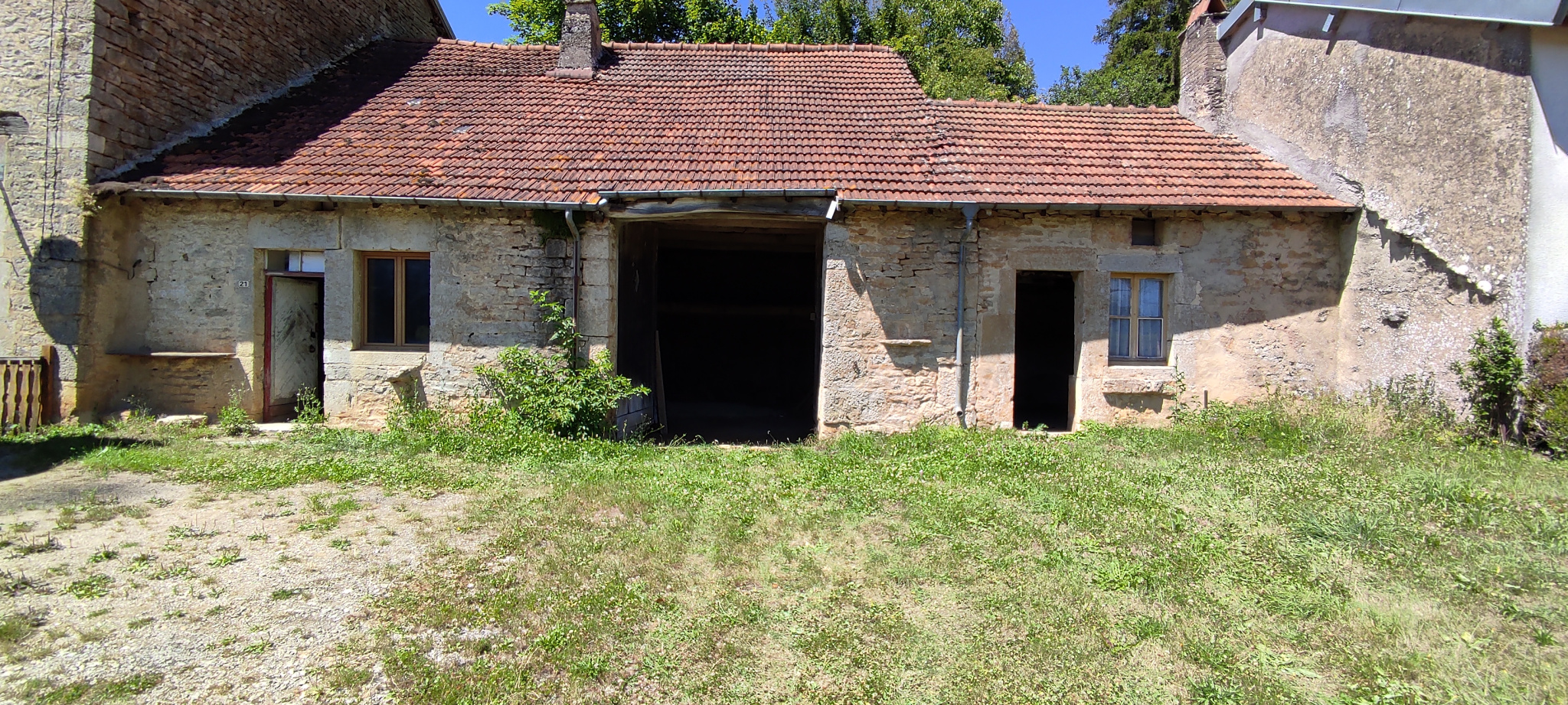 Ancienne maison d’habitation composée de deux pièces (24 et 27 mètres carrés) et d’une grange de 47 mètres carrés avec grenier. Cour devant, jardin derrière. Aucun confort ni équipement. Peut devenir une habitation de plain-pied avec rénovation totale ou bien servir de lieu de stockage (matériel agricole, bois, outillage…). Taxe foncière 26 euros par an.