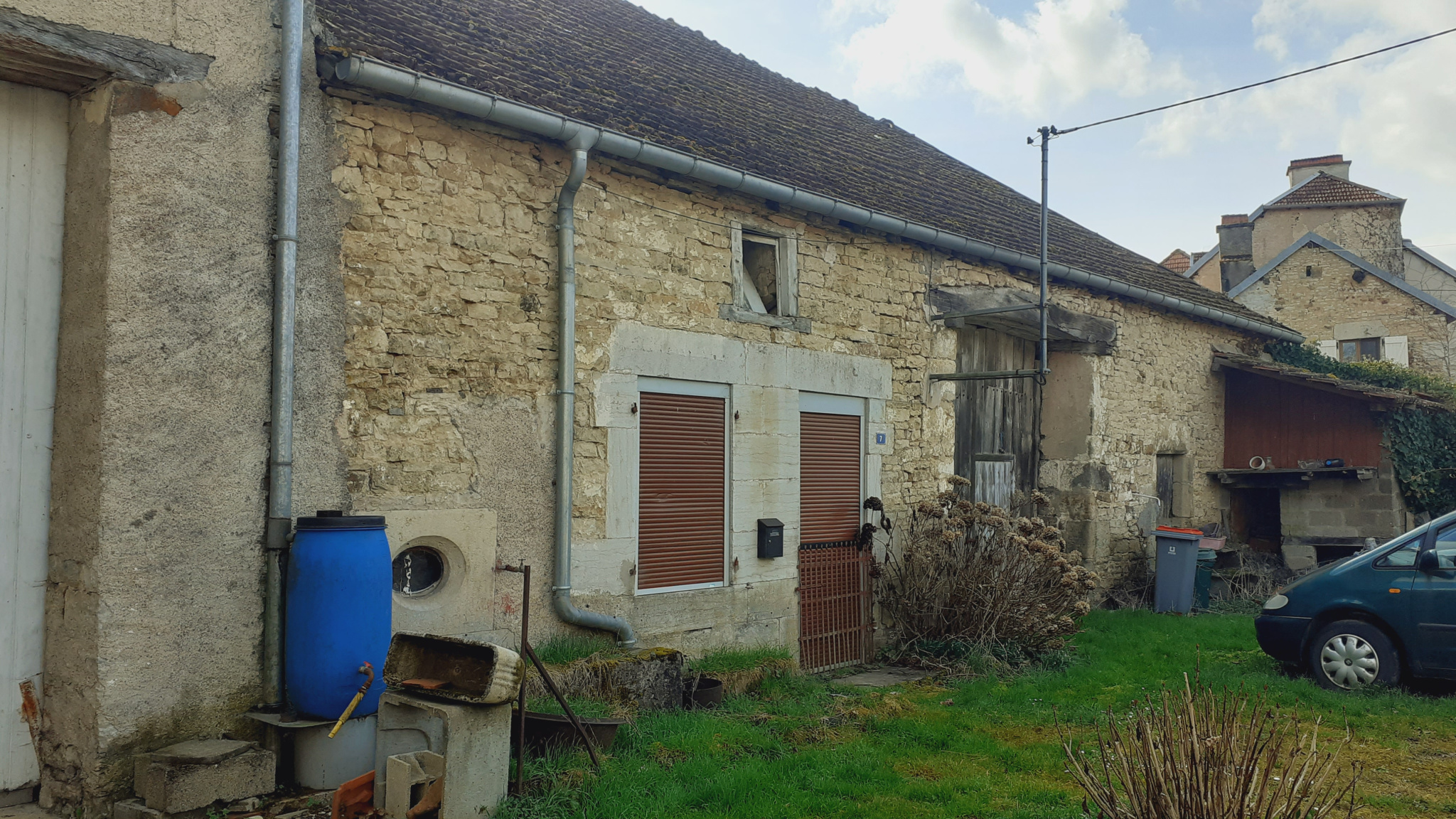 A proximité de Chalindrey, ancien corps de ferme à rénover, 250 m2 au sol, avec fort potentiel et grand terrain sur l’arrière , plat et clos de 3200 m2 en bordure de rivières, assainissement collectif.
