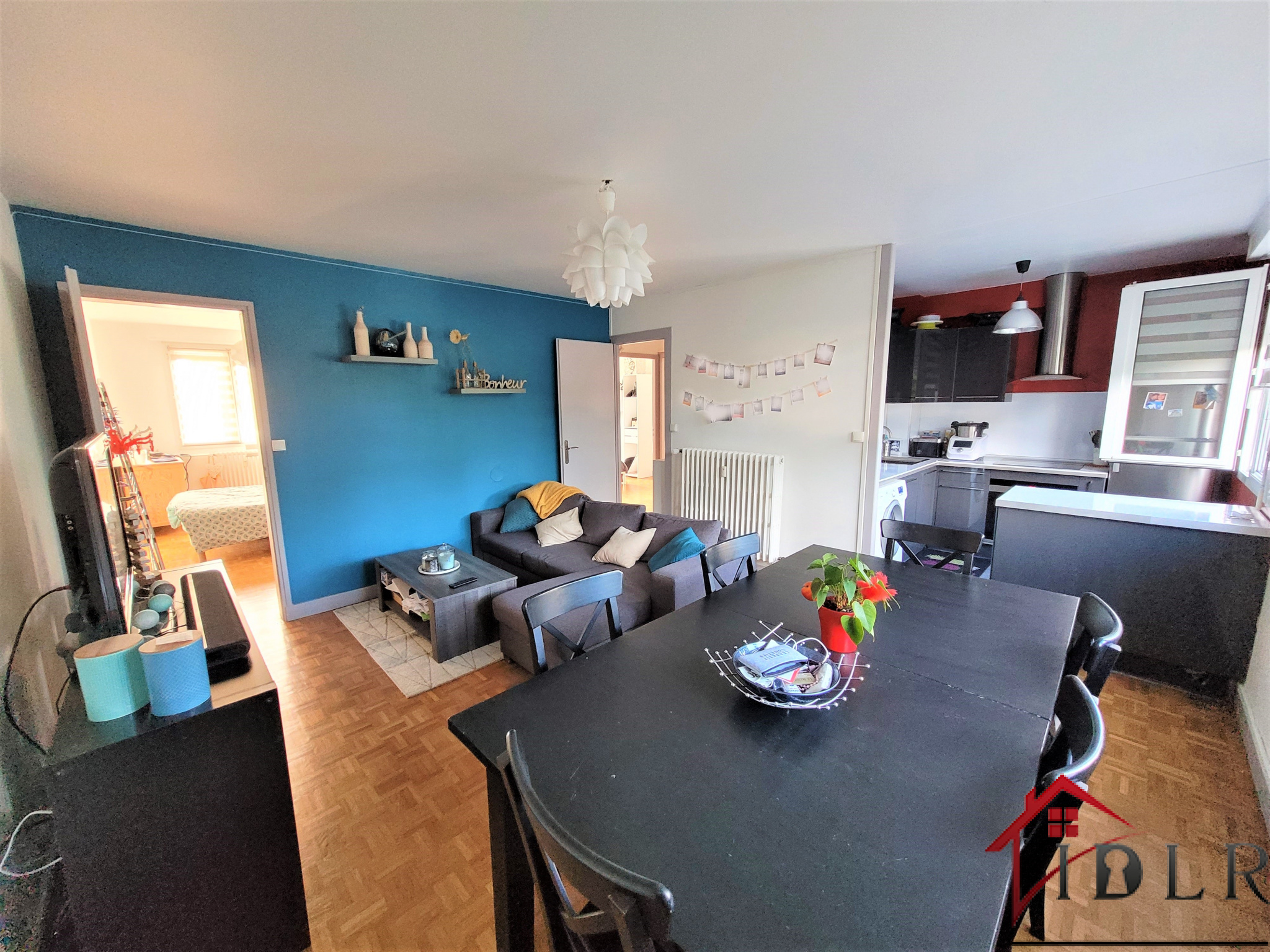 Appartement de 60 m2, au rez de chaussée, composé d’une entrée avec placard, une salle d’eau, des toilettes séparées, un séjour lumineux, une cuisine équipée et 3 chambres. Une cave et un garage voiture.